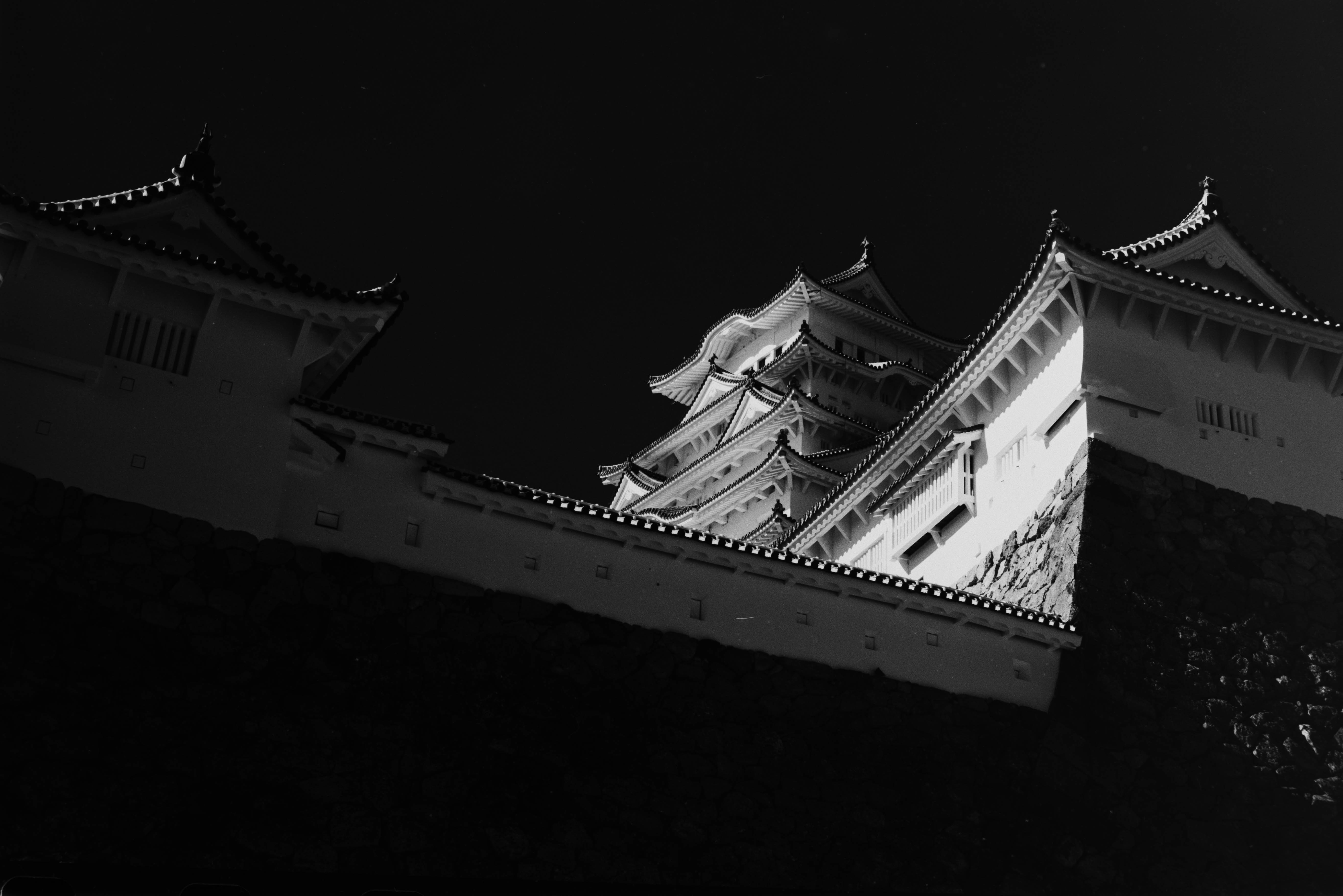 姫路城での作例。空が極端に暗くなるのは赤外写真の特徴の一つ。