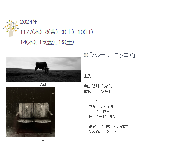 また、作例の隠岐の写真をバライタにプリントして写真展をします。場所は神戸市元町のBirdie Photo Galleryという元町駅からすぐのところで、日時は11/7~11/16です。ぜひ遊びに来てください。