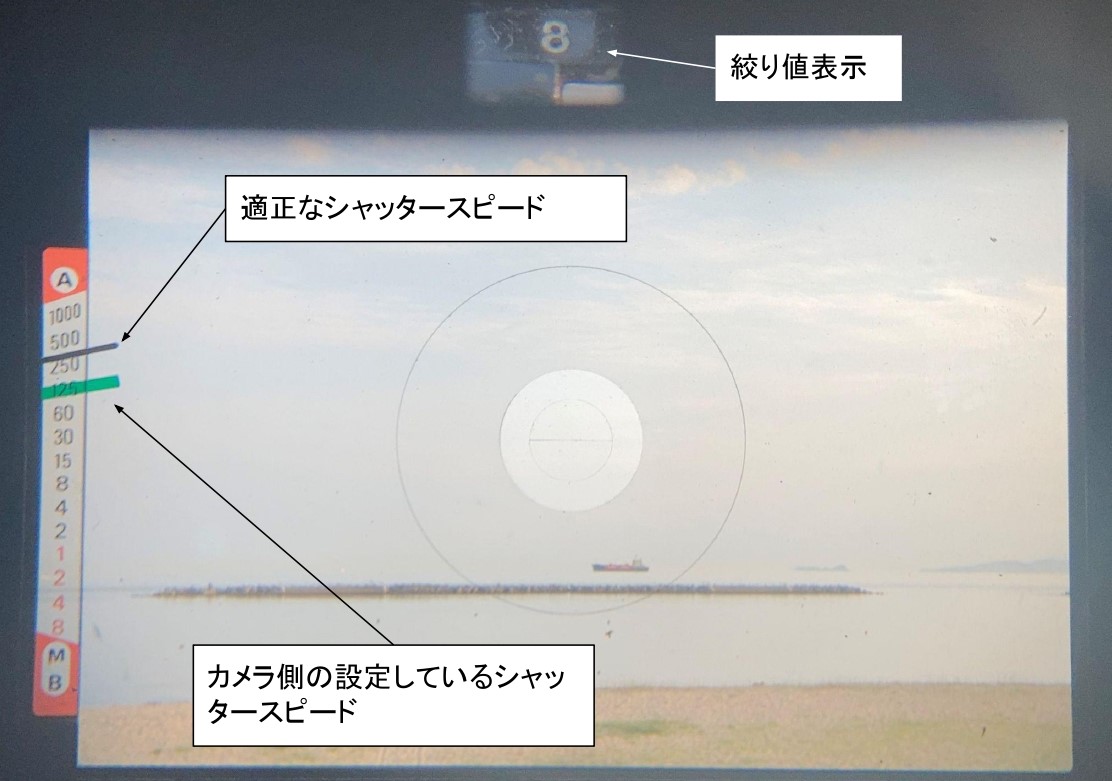 ファインダー内に表示される露出計を頼りに露出を設定します。NikonFEに関しては絞りとISO感度に対して、適切なシャッタースピードを示してくれます。